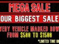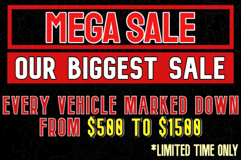 MEGA SALE IS ON!!! OUR BIGGEST SALE OF THE YEAR!!! EVERY VEHICLE $500-$1500 OFF!!!