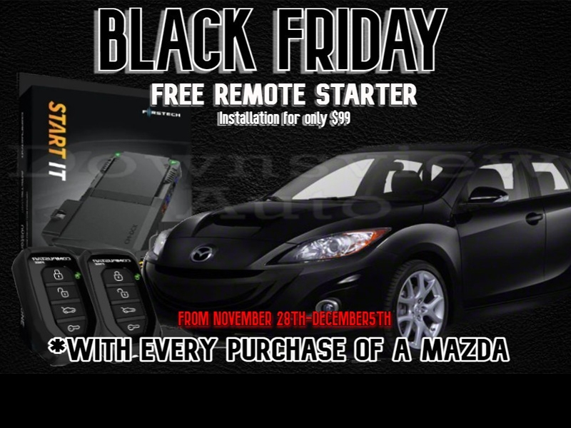 BLACK FRIDAY WEEK HAS ARRIVED!!! NOV 28th – DEC 5th!!! FREE REMOTE STARTER WITH EVERY MAZDA, PROFESSIONAL INSTALL ONLY $99!!!